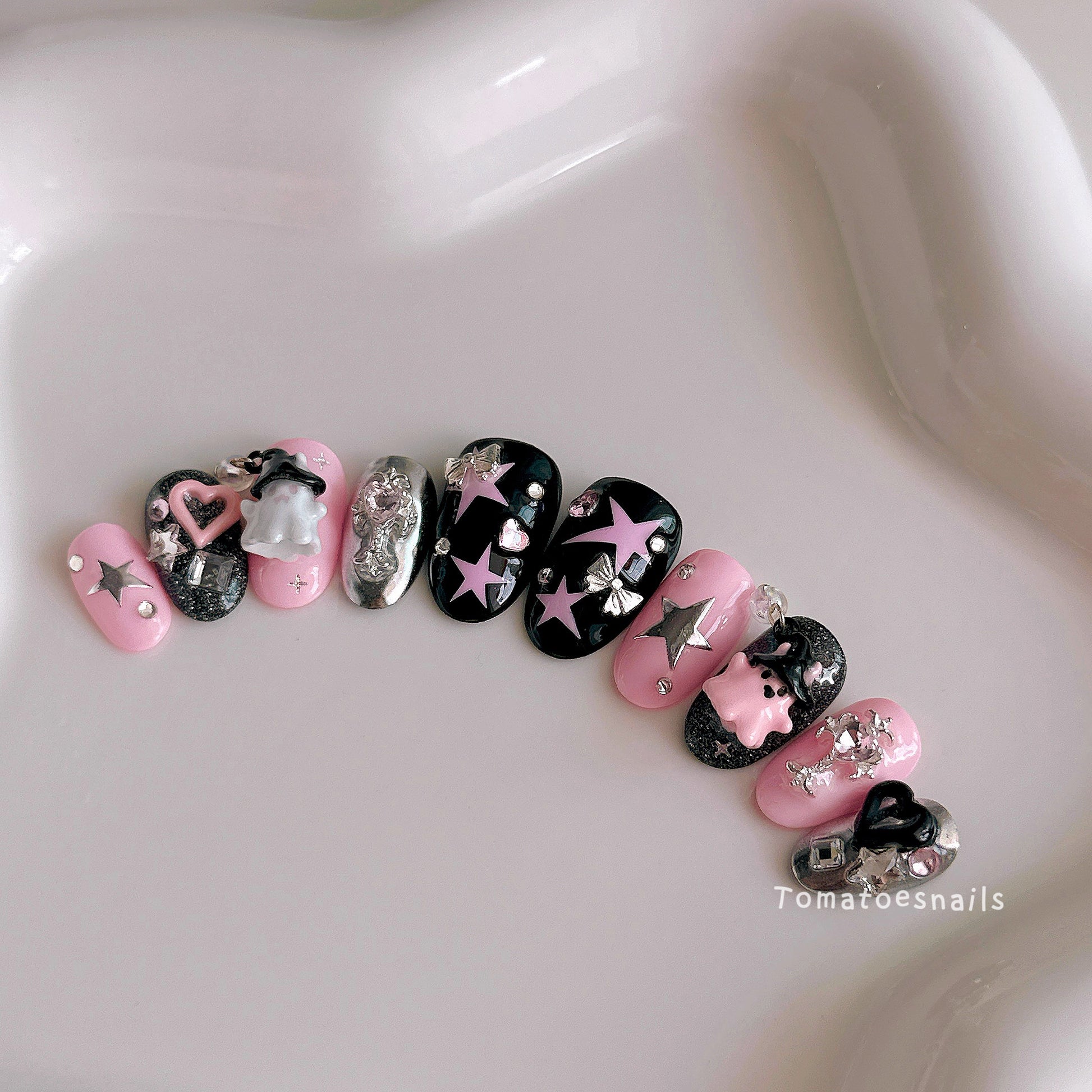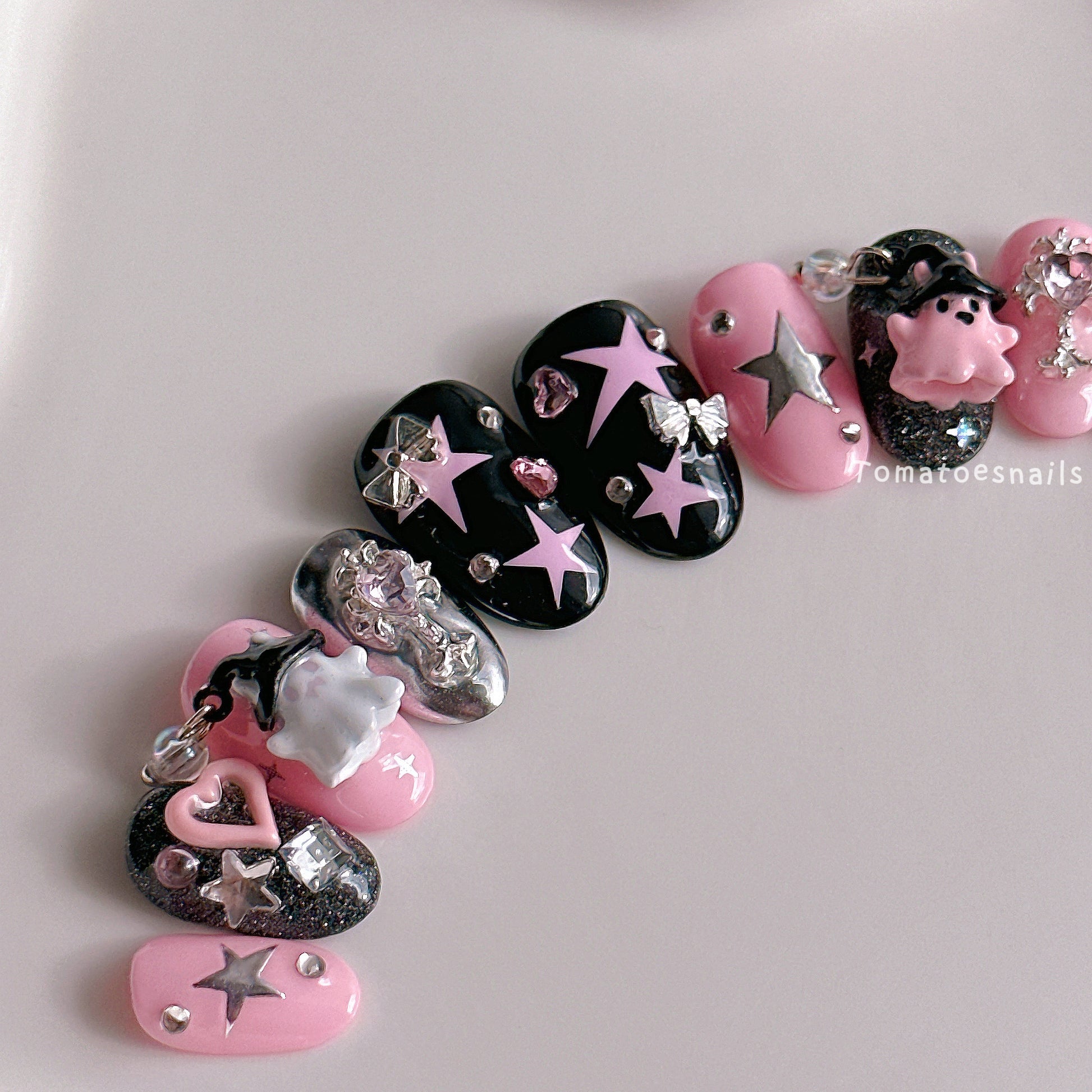 If you order a shorter nail length, some charms will need to be adjusted to make the design look pretty and fit on a smaller nail tip ʕ•́ᴥ•̀ʔっ.