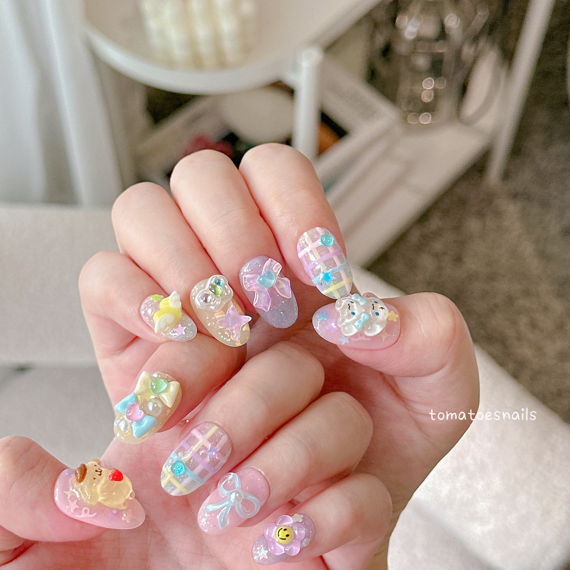 If you order a shorter nail length, some charms will need to be adjusted to make the design look pretty and fit on a smaller nail tip ʕ•́ᴥ•̀ʔっ.