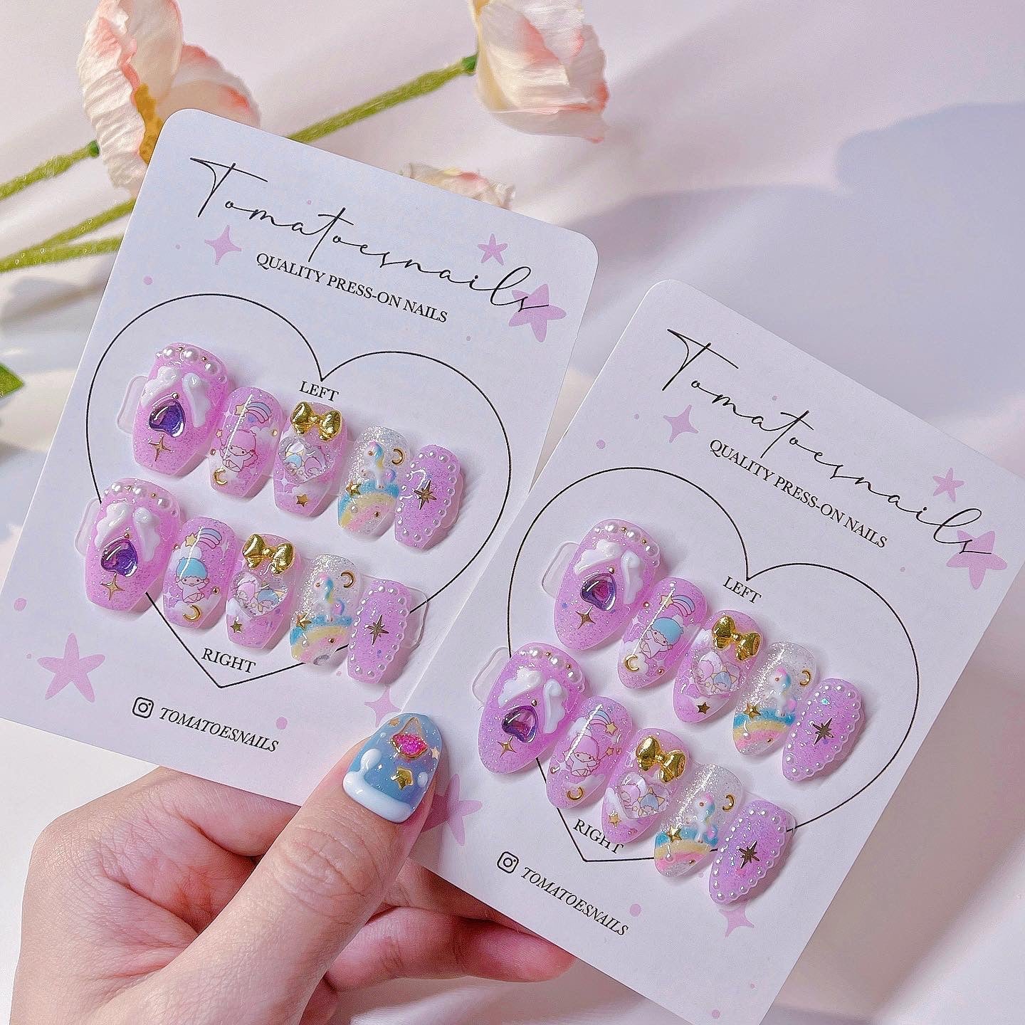 If you order a shorter nail length, some charms will need to be adjusted to make the design look pretty and fit on a smaller nail tip ʕ•́ᴥ•̀ʔっ.