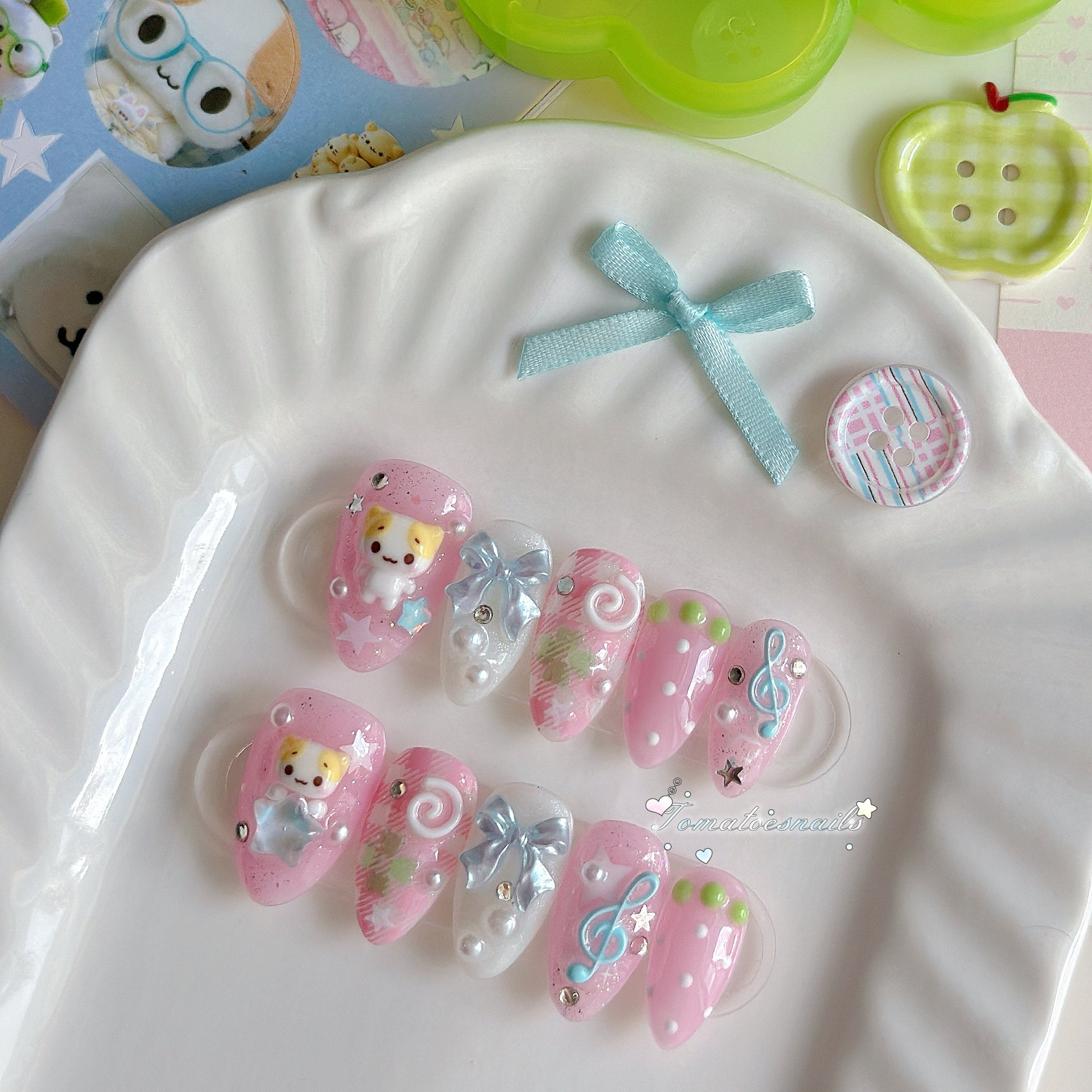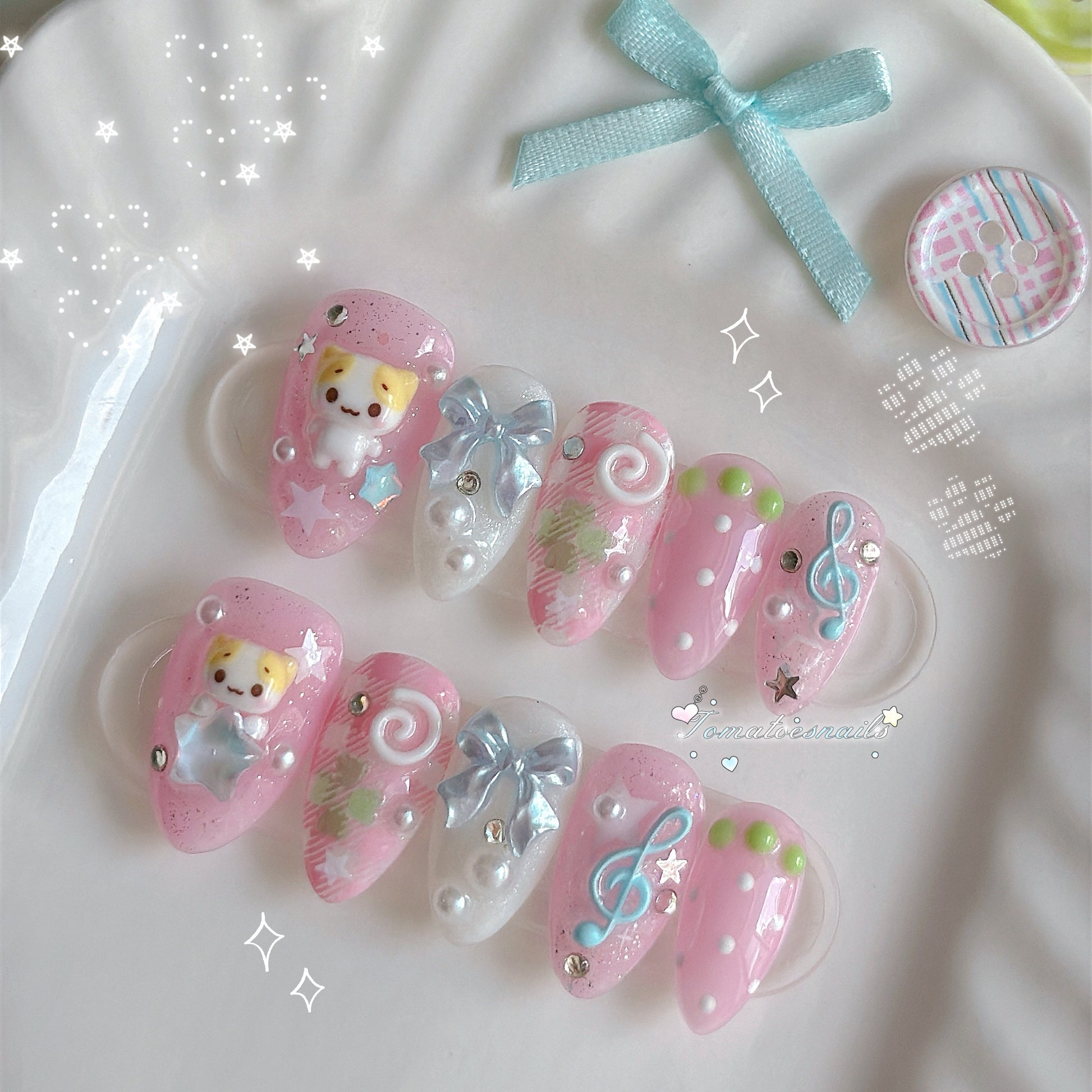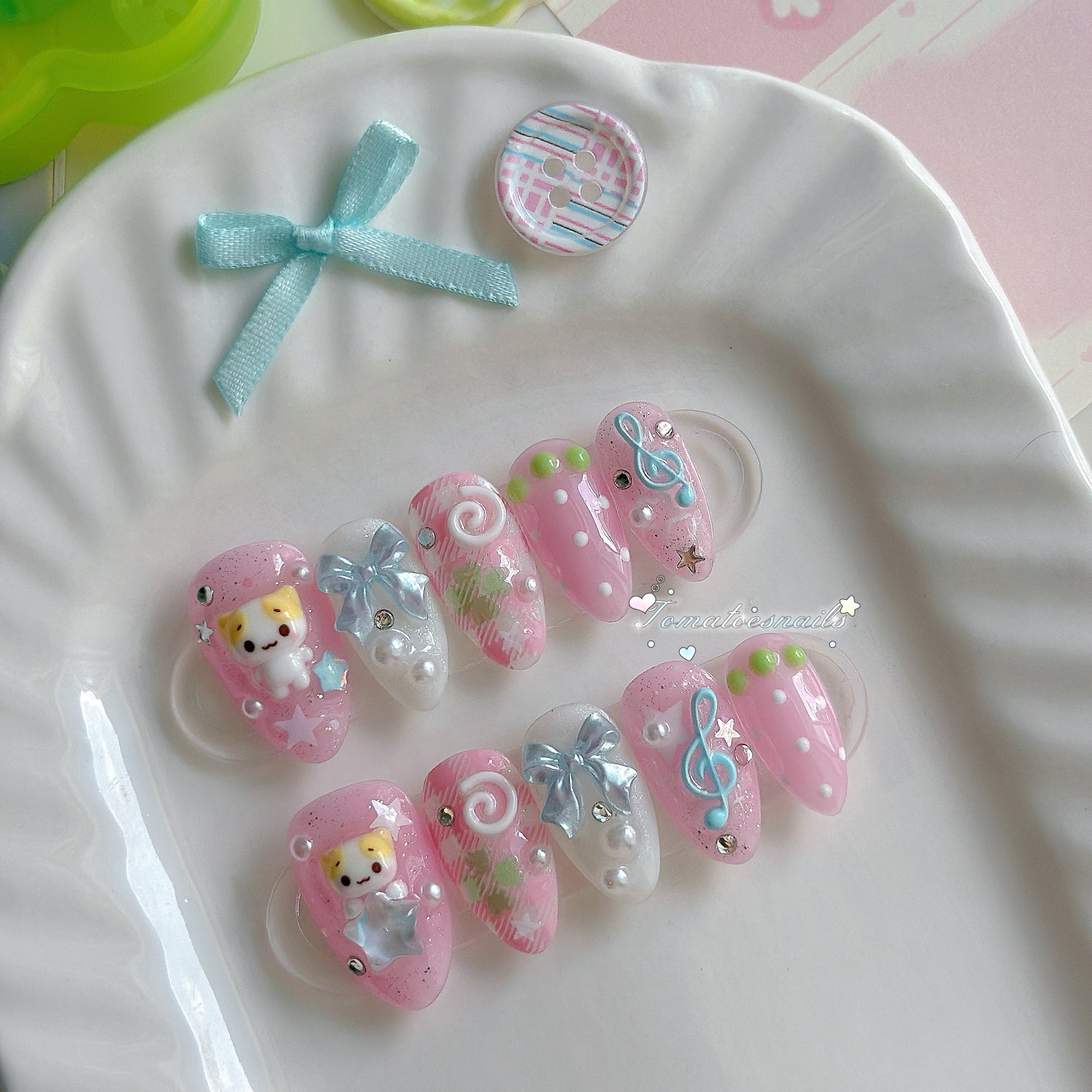 If you order a shorter nail length, some charms will need to be adjusted to make the design look pretty and fit on a smaller nail tip ʕ•́ᴥ•̀ʔっ.