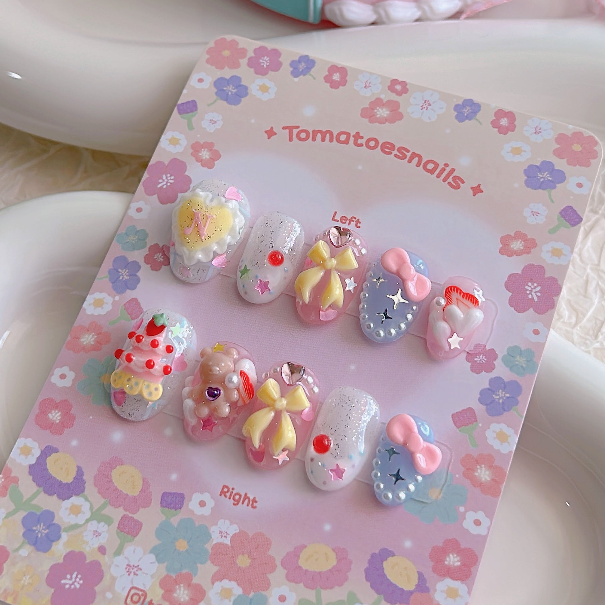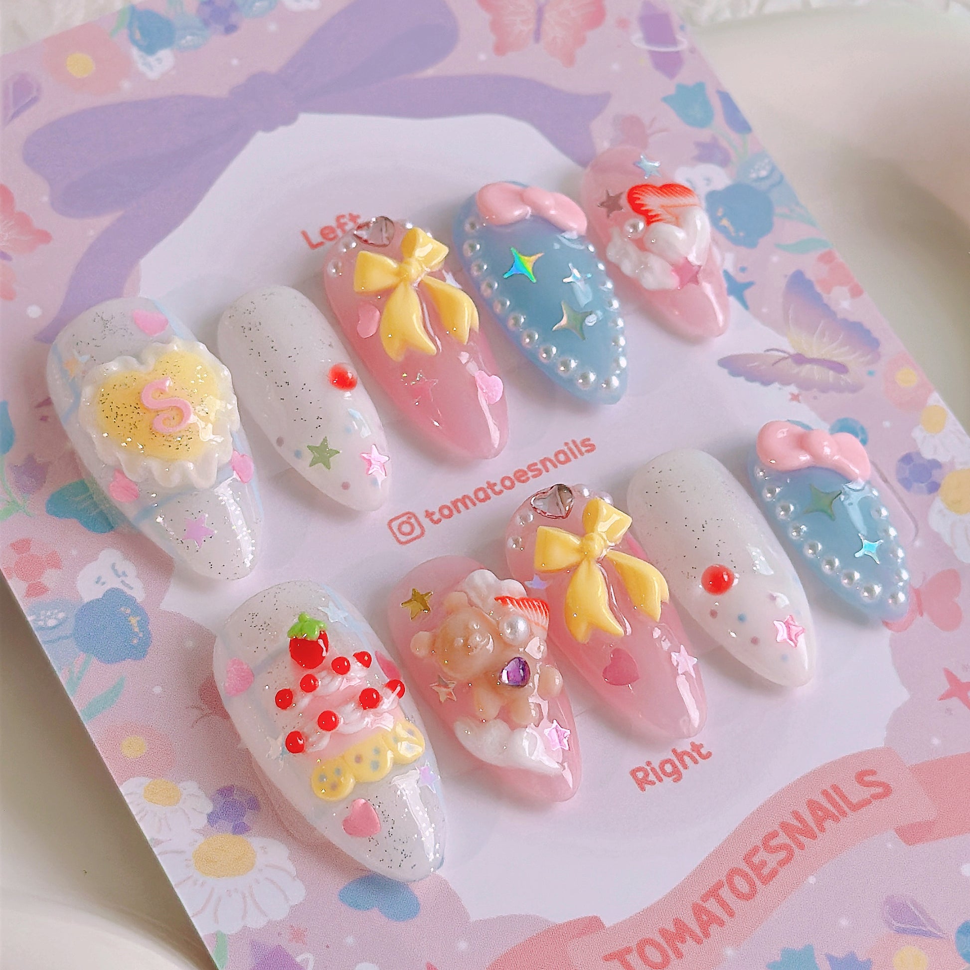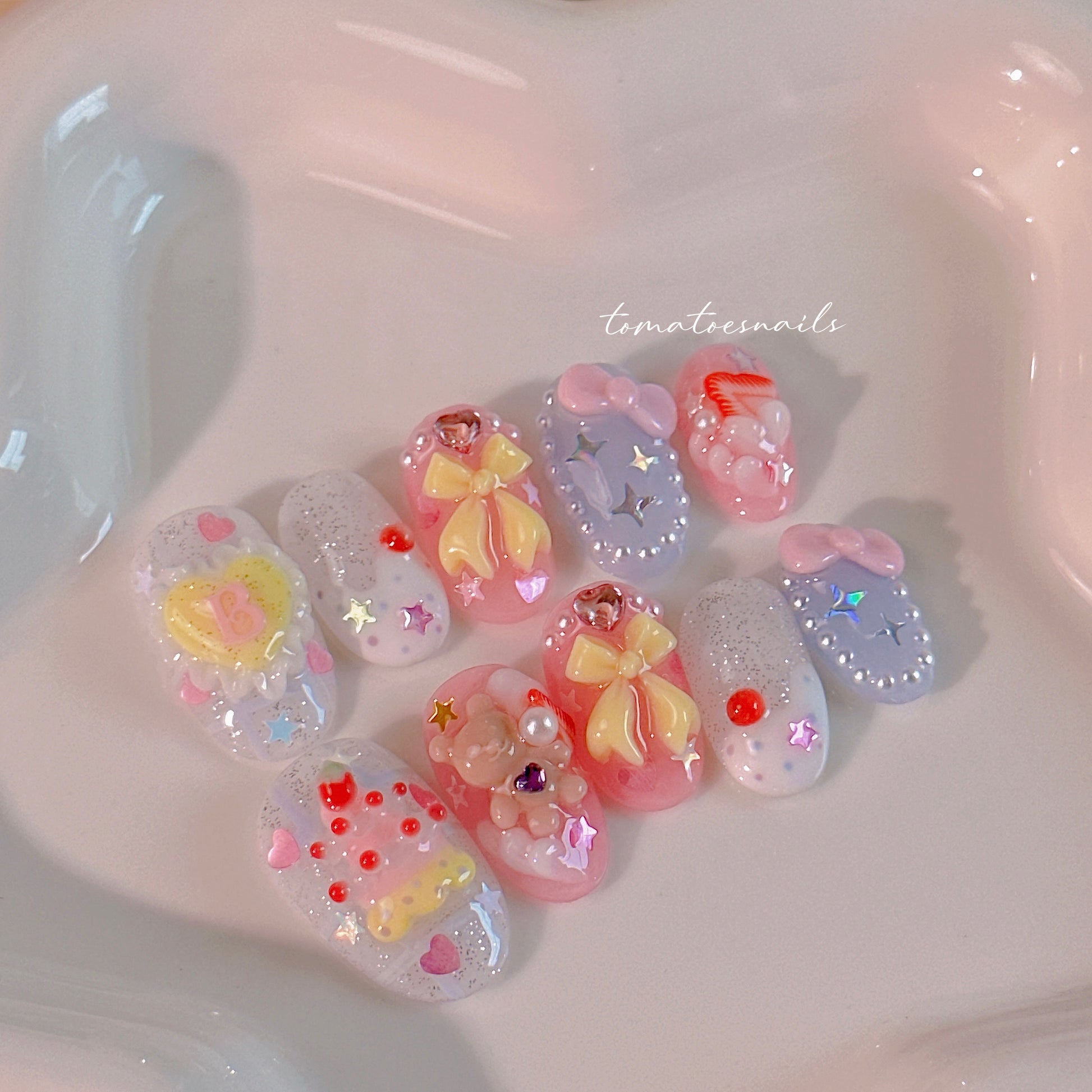 If you order a shorter nail length, some charms will need to be adjusted to make the design look pretty and fit on a smaller nail tip ʕ•́ᴥ•̀ʔっ.