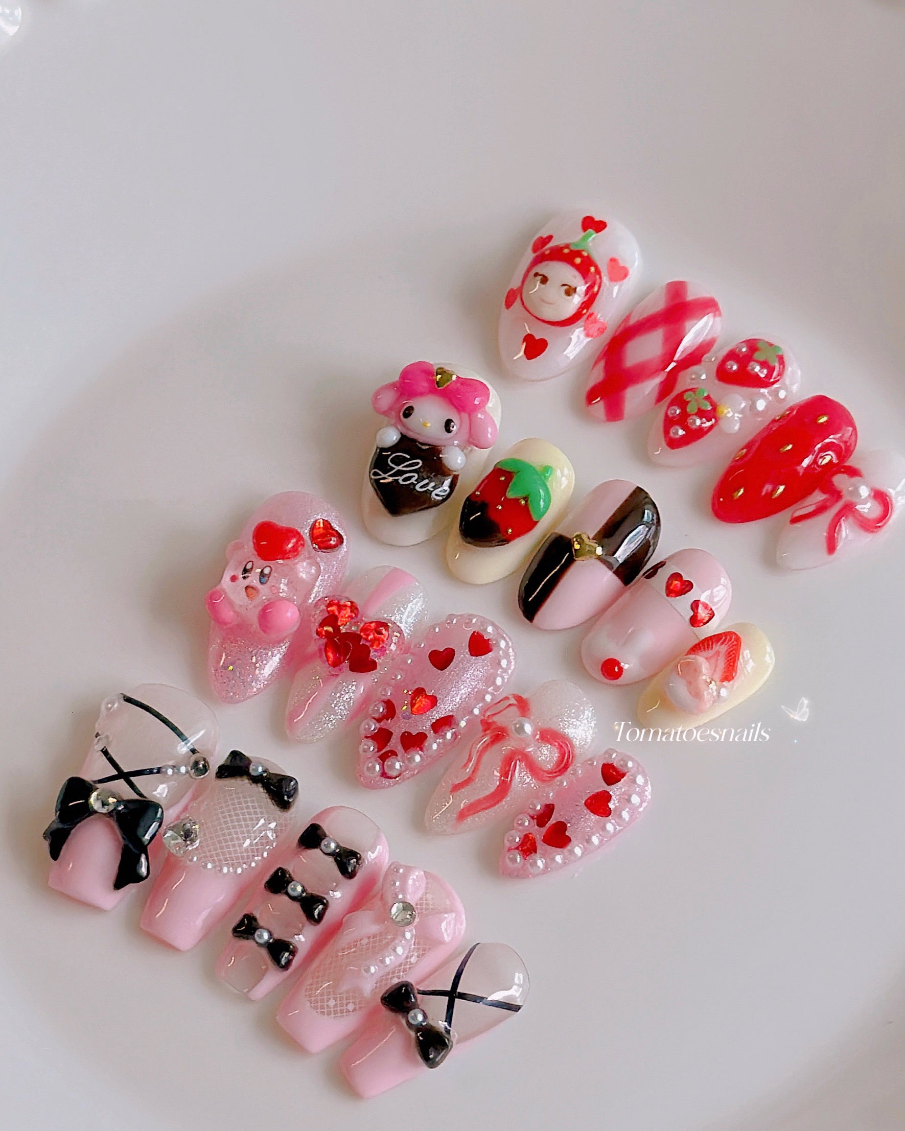 If you order a shorter nail length, some charms will need to be adjusted to make the design look pretty and fit on a smaller nail tip ʕ•́ᴥ•̀ʔっ.