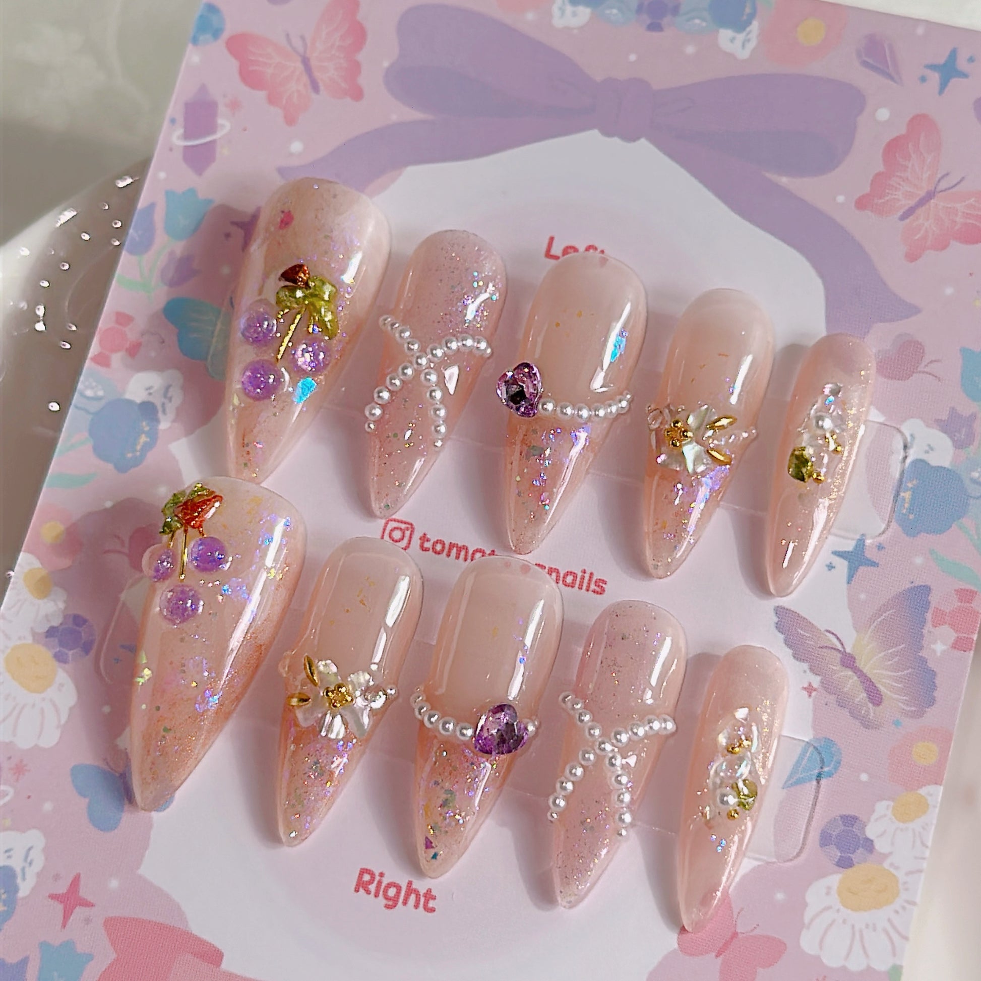 If you order a shorter nail length, some charms will need to be adjusted to make the design look pretty and fit on a smaller nail tip ʕ•́ᴥ•̀ʔっ.