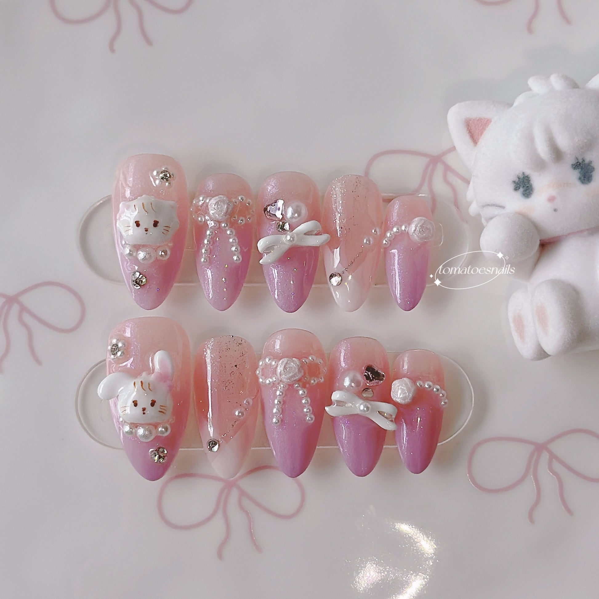 If you order a shorter nail length, some charms will need to be adjusted to make the design look pretty and fit on a smaller nail tip ʕ•́ᴥ•̀ʔっ.