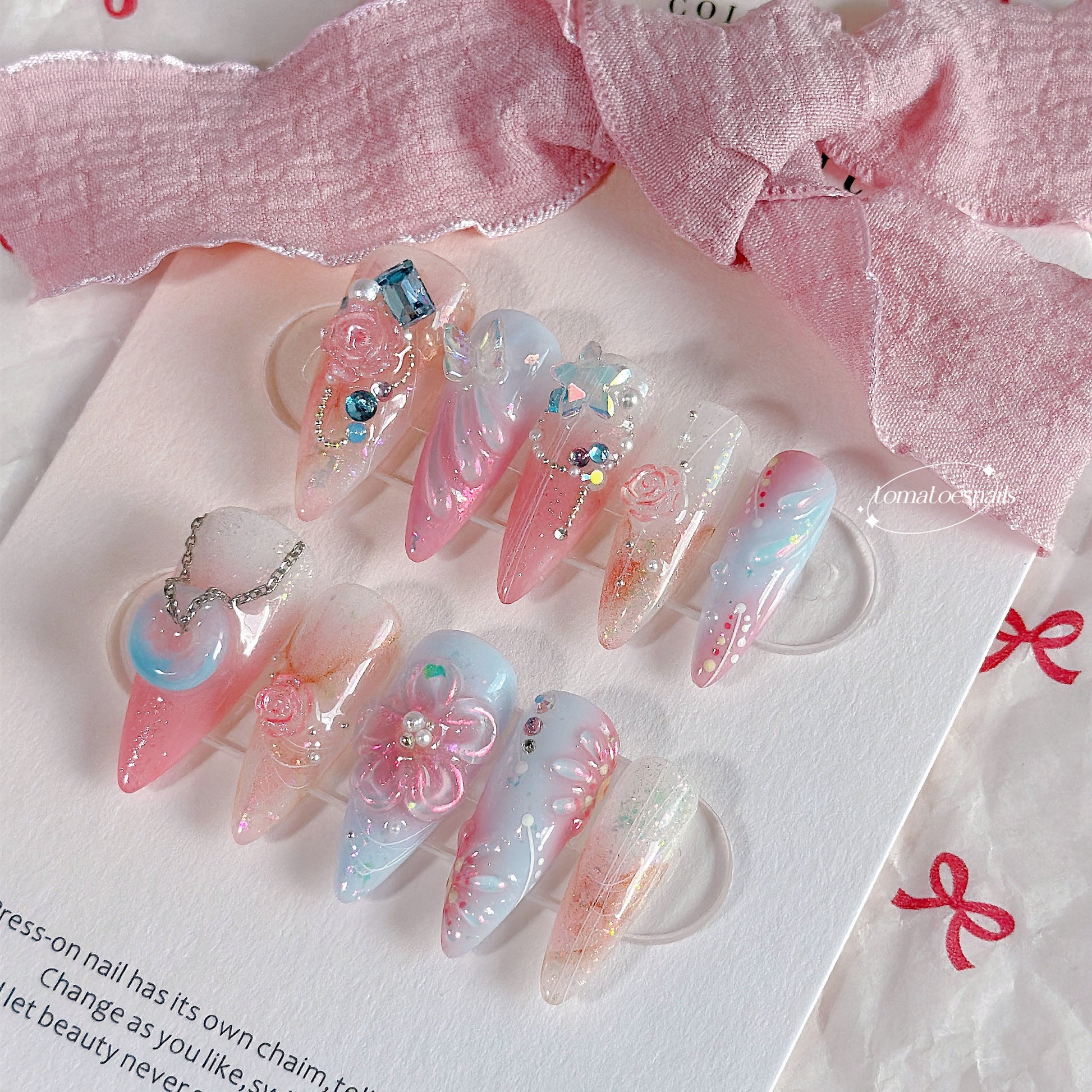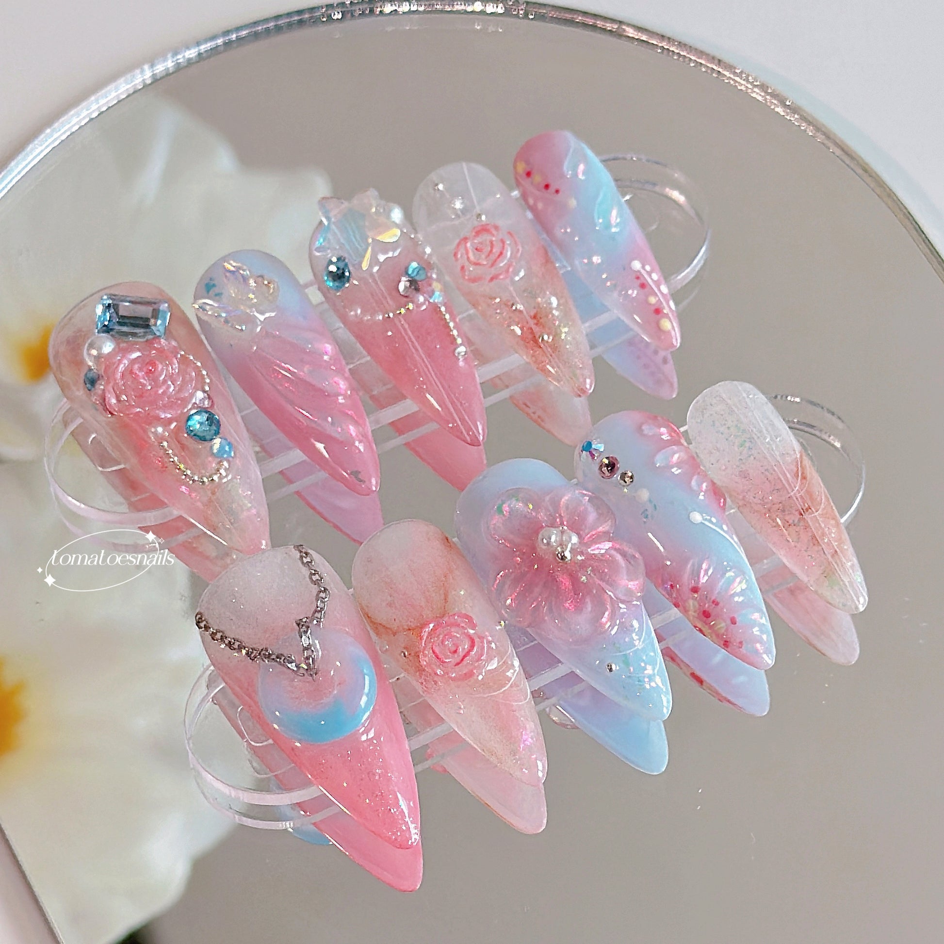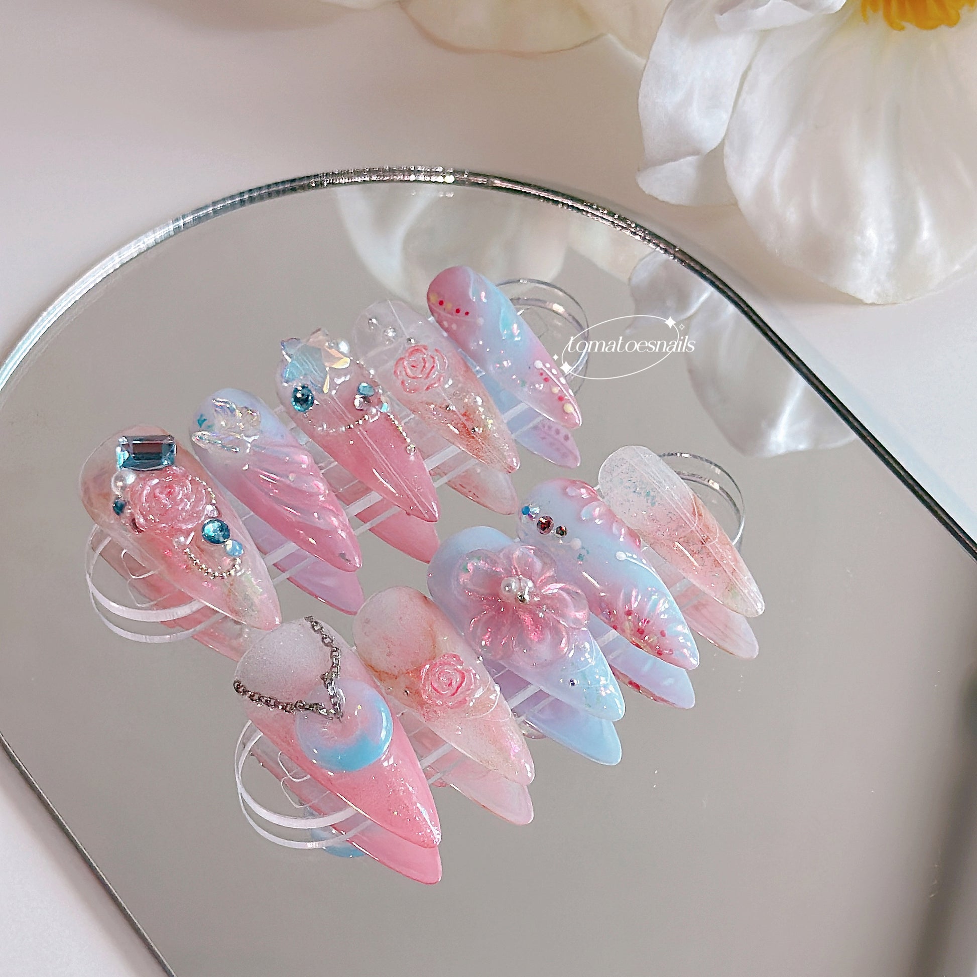 If you order a shorter nail length, some charms will need to be adjusted to make the design look pretty and fit on a smaller nail tip ʕ•́ᴥ•̀ʔっ.