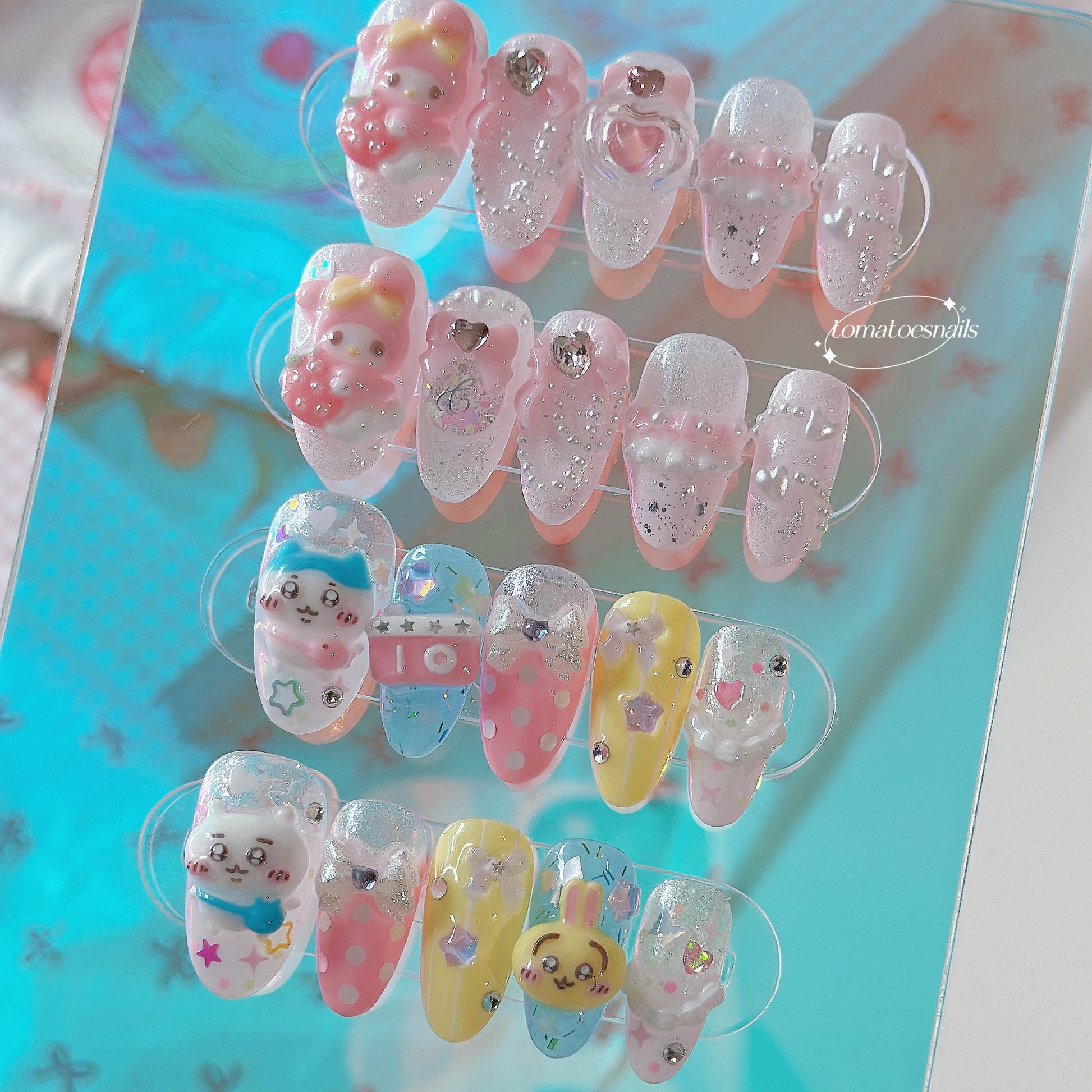 If you order a shorter nail length, some charms will need to be adjusted to make the design look pretty and fit on a smaller nail tip ʕ•́ᴥ•̀ʔっ.