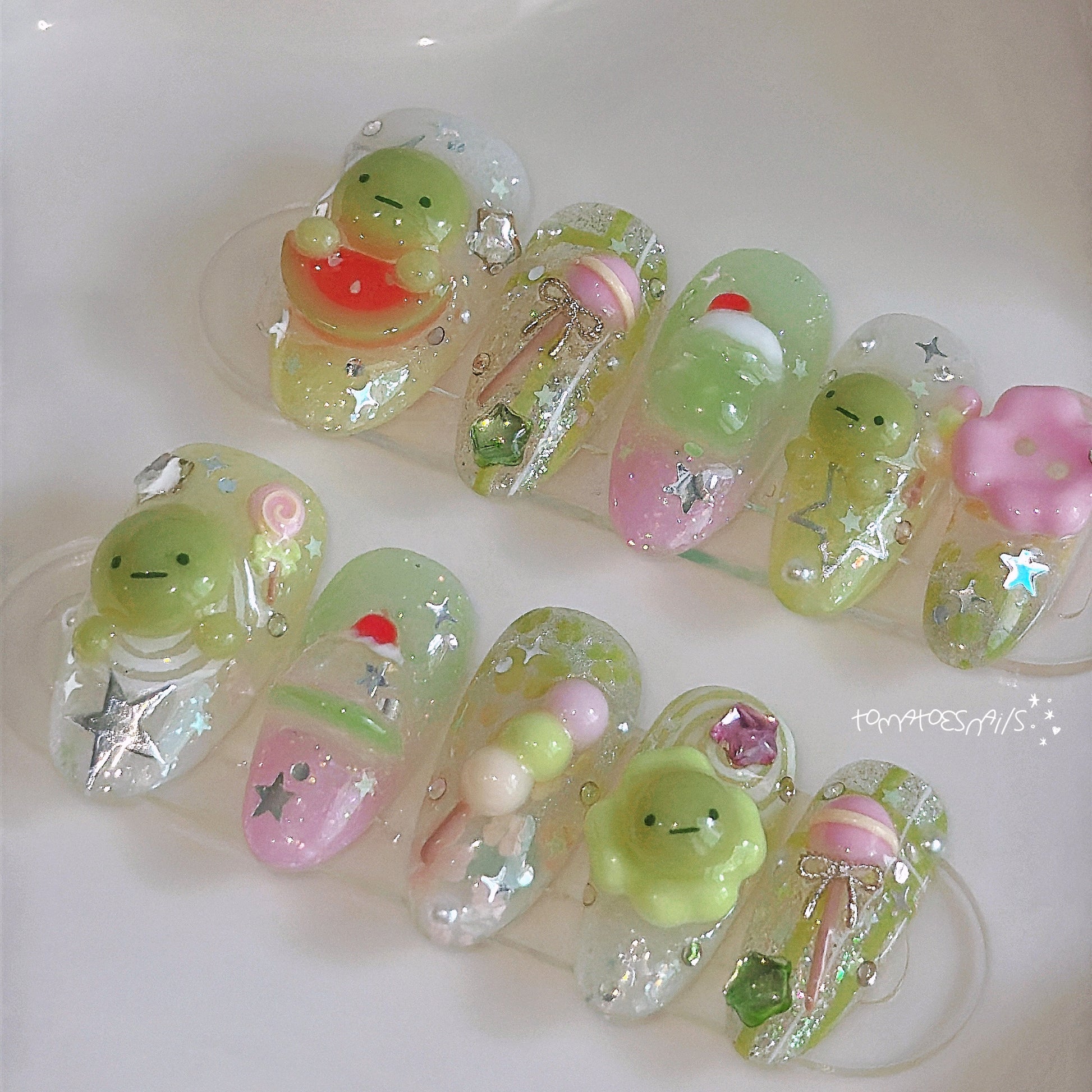 If you order a shorter nail length, some charms will need to be adjusted to make the design look pretty and fit on a smaller nail tip ʕ•́ᴥ•̀ʔっ.