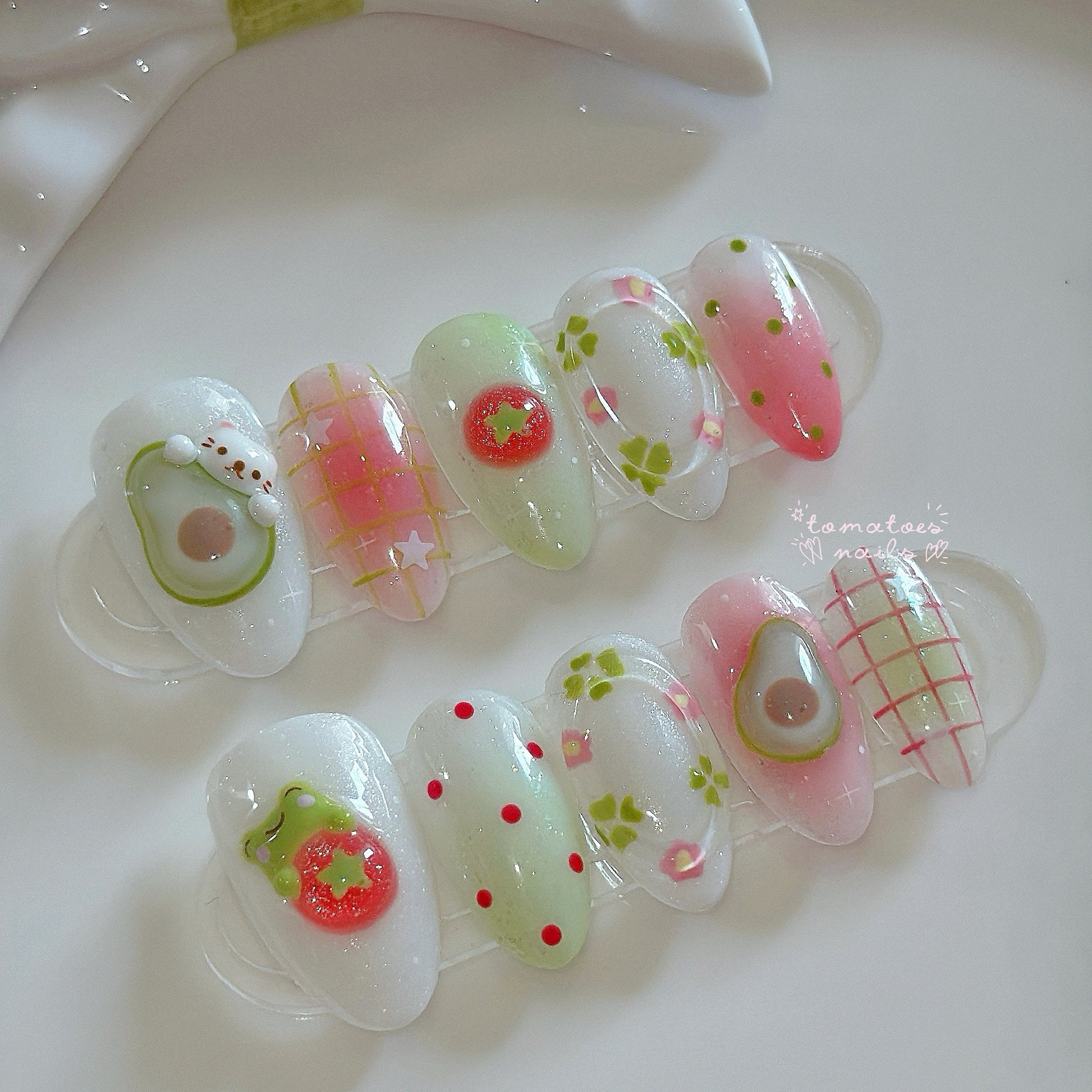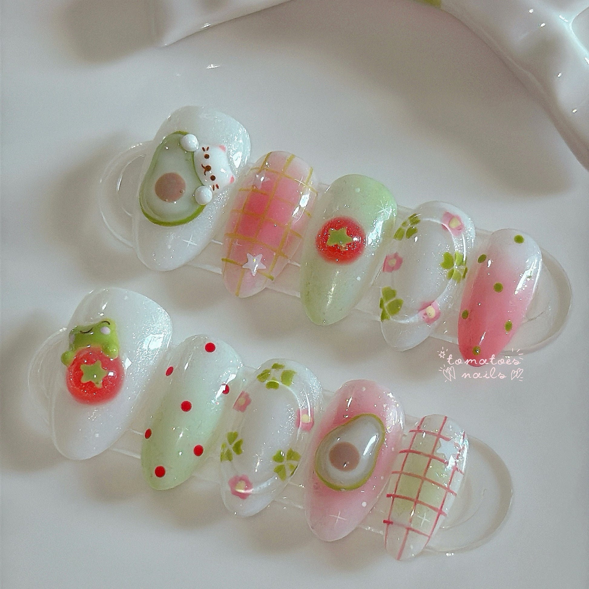 If you order a shorter nail length, some charms will need to be adjusted to make the design look pretty and fit on a smaller nail tip ʕ•́ᴥ•̀ʔっ.