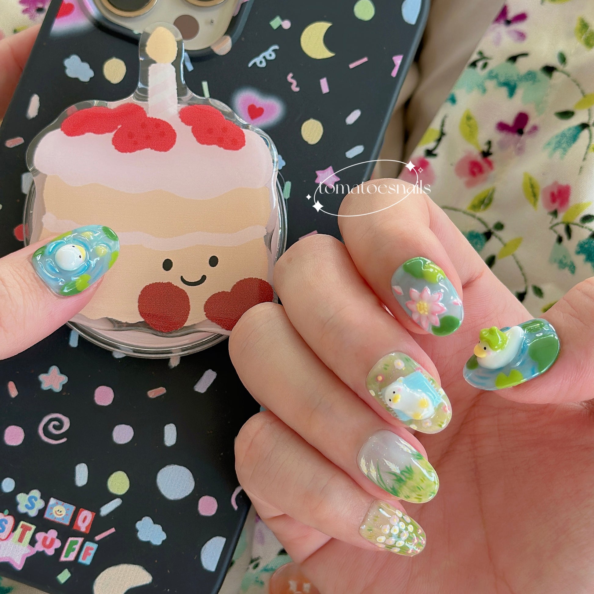 If you order a shorter nail length, some charms will need to be adjusted to make the design look pretty and fit on a smaller nail tip ʕ•́ᴥ•̀ʔっ.