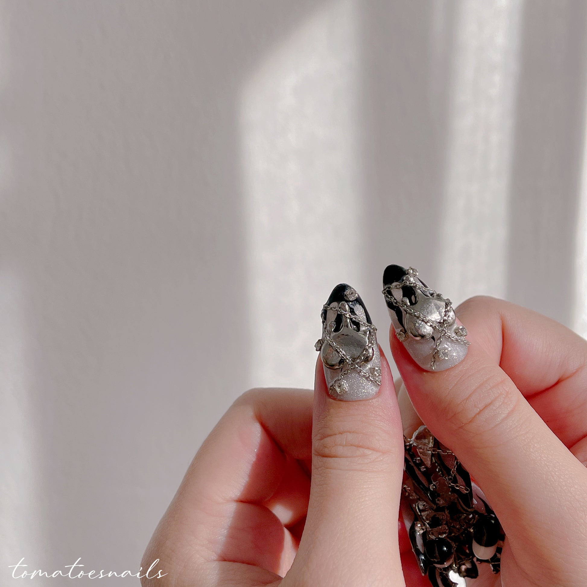 ☆ CUSTOM SIZE: Please leave a note of your own measurements if you don't have my sizing kit in millimeters; for example: Left & Right = thumb 15/index 11/mid 12/ring 11/pinky 8 mm. OR nail size numbers according to the standard chart (e.g., 1/5/4/5/8)